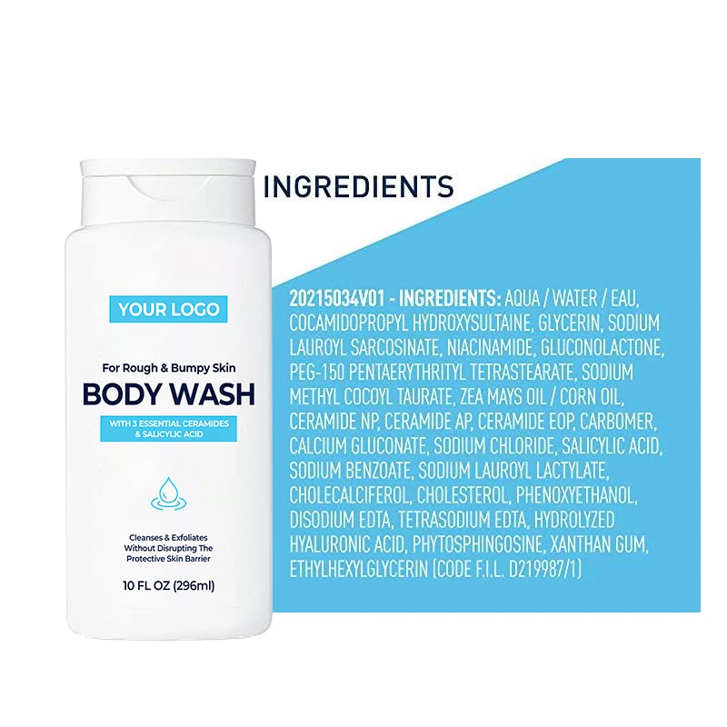Herbal Body Wash with Dual-Action Salicylic Acid & Hyaluronic Acid Hydrating Shower Gel for Smooth Skin & Blemish Prevention